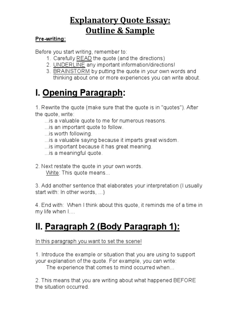 If you need to quote something that already includes a quotation in it, then place the regular double quotation marks at the beginning and the end of the complete quotation, and use special single quotation marks for the quote within the quote. Essay quotes that start sentences or end paragraphs make you appear passive. You should aim to keep your quotations to less than 2 lines on an a4 writing page. You'll present these quotes in a block of text set off from the rest of your paragraph. If you wish to quote more than one paragraph, you need to use block citations, regardless of the particular length of every fragment from those paragraphs. If the quote is a continuation of the sentence that precedes it, you don't need to add any extra punctuation. Incorporating quotations as you choose quotations for a literary analysis, remember the purpose of… Starting an essay with a quote, you need to find a way to make your writing impressive. Start the quotation on a new line, indented 1/2 inch from the left margin, i.e., in the same place you would begin a new paragraph. In the main body paragraph, a quote is placed in the middle of the passage. Selecting the most appropriate quote, and. Now, i don't even try. The text is identical to the original.
